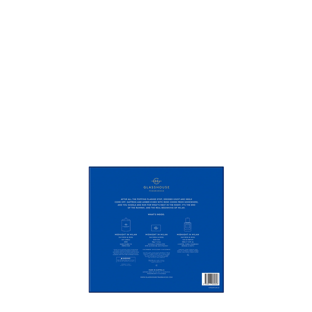 Contains: 1 x 50mL Eau de Parfum, 1 x 100mL Body Lotion, 1 x 95g Body Bar in a decorated gift box.